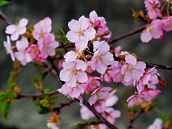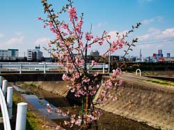 近くの嫁付川に、一本だけ「川津桜」が植えられています。以前はなかったように思います。支柱が添えられていましたので最近のことでしょう。今満開になっています。その他のソメイヨシノは、まだ蕾でした。