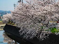 嫁付川のソメイヨシノが満開になりました。この頃の暖かさで一気に満開になったようです。名前は嫁付川と言うのですが、生活排水が流れるどぶ川ですが水質は改善されているのか、水鳥が飛来していました。空を見上げると月が昇っていました。朧月ですね。
