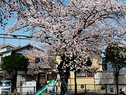 近所の児童公園のソメイヨシノも満開になっています。お地蔵様も微笑んでご覧になっていることでしょう。足下を見ると花片が多く落ちています。早くも落花が始まっています。花の命は短いものですね。ご近所のチューリップの満開でした。