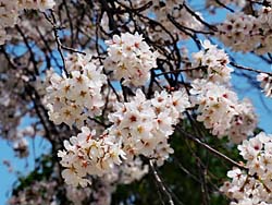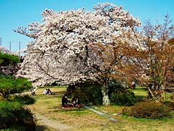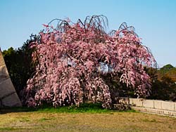 伏見桃山城に戻って、城の周囲は公園になっているので、桜の下でシートを敷いている家族もいました。枝垂れ桜も数本咲いていました。