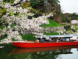 城内から出て、お堀端を歩いて見ました。お堀を観光船が走っています。国宝の城の堀を観光船が、往来しているのは初めて見ました。堀に沿って桜並木になっていて花見客が宴会をしていました。