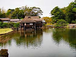 彦根城に戻って、国の名勝に指定されている「玄宮楽々園(げんきゅうらくらくえん)」です。江戸時代前期に作庭された大規模な池泉回遊式庭園です。(動 画) 庭園から彦根城・天守閣が望まれます。