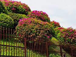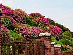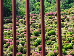 京都市東山区にある「蹴上浄水場」が、一般公開していましたのでツツジを見に出掛けました。歩道から柵の向こうに見えるツツジを撮しました。趣のある柵なので絵になります。