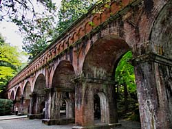 南禅寺門前で、観光人力車がありました。南禅寺境内に入ると有名な水路閣があります。建設された当時は、寺の境内を分断するような水路閣は、違和感があったと思われますが、現在では見事に溶け込んで寺の風景の一部となっています。水路閣は現在でも疎水が、自然勾配で北に向かって流れています。(動 画)