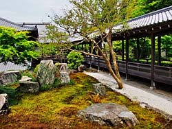 南禅寺の方丈庭園(名勝指定庭園)です。(動 画) 禅院式枯山水で、巨石の姿から「虎の児渡し」と呼ばれています。慶長年間「小堀遠州」の作庭と言われています。