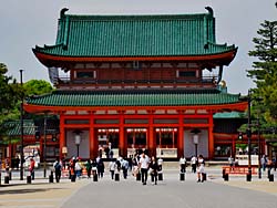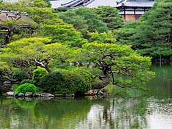 平安神宮に戻って、池に「臥龍橋(がりゅうきょう)」という飛び石がありますが、通行止めになっていました。茶店の人に聞くと池に落ちた人があったらしく、それ以降禁止になったとか。今は、何か想定外のことが発生するとすべてがダメになりますね。禁止の飛び石に水鳥が遊んでいました。