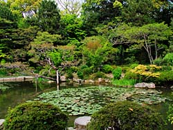 東神苑は、明治から大正にかけて造らた東山を借景とした、明治時代を代表する名園です。広大な栖鳳池(せいほういけ)があり池には鶴島・亀島があります。