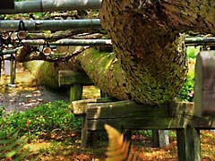 芳徳寺に戻る途中に、炭焼き小屋を見つけました。尾羽根炭窯(おばねすみがま)と呼ばれる見学できる炭焼き小屋のようです。木酢液も作っているそうです。