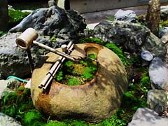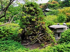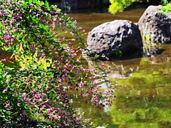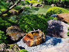 平安の庭から室町の庭に移動です。風情のある、蹲(つくばい)、石灯籠が池の周囲に設置されていました。