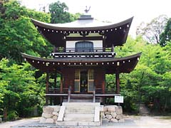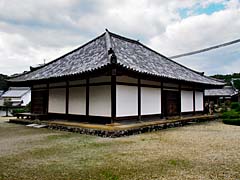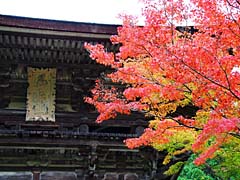 本堂内には、弘法大師像などの仏像がありますが、振り返ると「楼門(重要文化財)」が見られます。応仁2年(1468)の再建です。