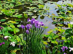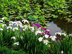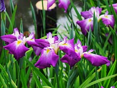 再び山田池公園・花菖蒲園に咲いていたハナショウブです。左から「万里の響き」、「小桜姫」、「藤絞り」です。