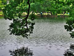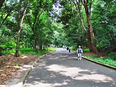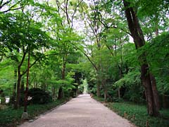 大阪府枚方市にある「山田池公園」です。ハナショウブを見に出かけたのですが、花菖蒲園に行く駐車場からの道すがらの風景です。樹木に囲まれ木漏れ日が清々しい散歩道でした。