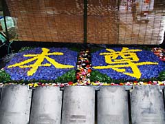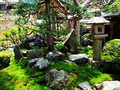 善峯寺と言えば国の天然記念物に指定されている「遊龍の松」が有名です。五葉松で樹齢600年全長37mあります。全体は(動 画)でご覧下さい。14年前の2003年に撮した(動 画)を見ると向かって左端が大きく伸びていることがわかります。バックにある堂の半分しかなかったのが堂を超えています。