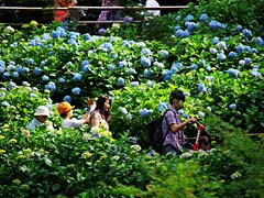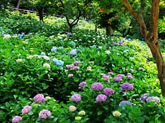 再び山田池公園に戻って、花菖蒲園から少し離れた斜面にアジサイが咲いています。花菖蒲園ほど知られてはいませんが、なかなか良い紫陽花園でした。