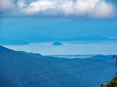 大津市にある「びわ湖バレイ」に行きました。1100mほどあるので、5度ほど気温が低く木陰に居ると風がヒンヤリとして気持ちが良いものです。121人乗りの大型ロープウェイで4分で山頂まで運んでくれます。速さは秒速12mで日本一の早さだそうです。山頂から見た竹生島と琵琶湖大橋です。