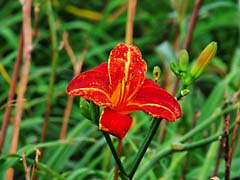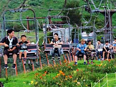 リフトの足下には赤と黄色の花が咲いていました。赤トンボが羽を休めていました。山頂は秋が近づいているようです。