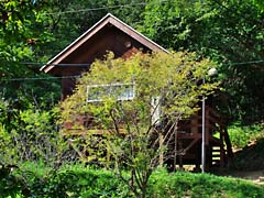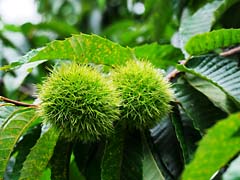 自然がいっぱいの森林公園ですが、マムシに注意はね・・・・! 栗が青いイガを付けていました。小川の周囲には、キャンプ場やログハウス・バンガローの設備が完備されています。(写真下段中央と右)
