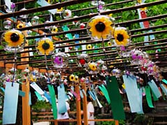 その一は、9月18日まで「風鈴まつり」が開催されています。室外にこのように数多くの風鈴が風になびいています。すべてガラスの風鈴ですが、これが一斉に鳴り出すと、チリンチリンと清涼を感じる音ではなくて、何か小喧しく聞こえます。その音色は(動 画)でご確認ください。