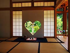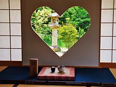 最近若い女性に人気なのが、ハート形した猪目窓(いのめまど)です。『この形は昔から魔除けや福を招くともいわれ、寺院ではよく見られる建築装飾です。』と案内板にありましたが、丸窓は見たことがありますが、ハート形の窓はここが初めてです。