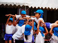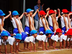 幼稚園で運動会がありました。年長組の組み体操と、年少組の徒競走ですが、先生がゴールで両手を広げて待ち構えてそこに飛び込むという、いかにも三歳児らしい徒競走でした。