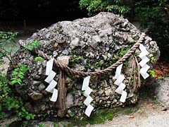 天の石立神社の奥に、「一刀石」という7m四方の巨石があります。柳生宗厳(石舟斎)が天狗と試合を行い、一刀のもとに天狗を切り捨てたと思ったところ、そこにあったのは二つに割れた巨石だったということで、それから一刀石と呼ぶようになったとのことです。確かに天狗が出てきそうな雰囲気の場所でした。(動 画)