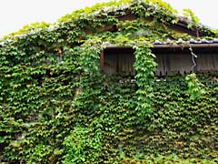 出町柳から百万遍に行く途中に、蔦に覆われた民家がありました。完全に蔦に征服されています。テレビのアンテナまで蔦が絡まっているのは初めて見ました。そして、京都大学構内を通り真如堂に行きました。