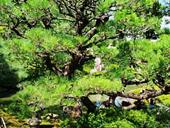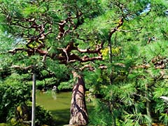 「遊龍の松」の幹を写しました。さすがに太い幹が地面を這うように伸びています。そして遊龍の松の向かって右端は、このようになっています。