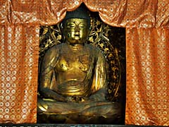 奈良県橿原市久米町にある「久米寺」です。近くに「橿原神宮」があります。平成6年に建立された金ぴかの大日如来像が燦然と輝いていました。