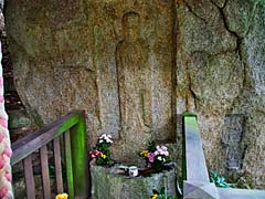 更に山を下っていくと、「疱瘡地蔵」がありました。疱瘡除けを祈願して作られたとされ、元応元年(1391)の刻銘があります。写真右は、「正長元年ヨリサキケンベ四カンゴウニヲヰメアルベカラズ」と彫られており、「正長元年(1428)以降は春日社領四力郷(大柳生、柳生、阪原、邑地(おうじ))には負債はない」という意味で、徳政一揆の際に農民が貸借なしを宣言した貴重な記録だそうです。