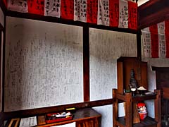 「大黒堂」というお堂があります。正面には祭壇がありその周囲の壁に、ビッシリと落書きが書かれてあります。落書きといっても願い事が書かれているのです。らくがき料金は、300円です。このらくがきは、12月で消されて新年には真っ白い壁に、落書きを書くことが出来るようになるそうです。