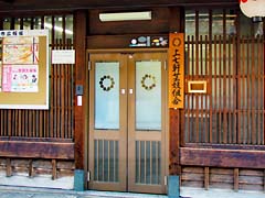 北野天満宮の隣に京都五花街の一つの「上七軒」があります。花街らしい簾の町家が並んでいます。その中に「上七軒芸妓組合」という表札のある建物がありました。花街らしいものを見つけました。ここに灯が入ると一段と花街らしくなるのでしょうね。