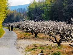 城陽市の青谷梅林です。梅の生産のための梅林ですので、ほとんどが白梅で「枝垂れ梅」など大阪城梅林や城南宮の梅の方が絵になります。「春は城陽から」というキャッチコピーで、昔から青谷梅林は有名なところです。
