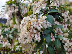『この春、僕はまえから一種の憧れをもっていた馬酔木の花を大和路のいたるところで見ることができた。そのなかでも一番印象ぶかかったのは、奈良へついたすぐそのあくる朝、途中の山道に咲いていた、たんぽぽやなずなのような花にもひとりでに目がとまって、なんとなく懐かしいような旅びとらしい気分で、二時間あまりも歩きつづけたのち、やっとたどりついた浄瑠璃寺の小さな門のかたわらに、丁度いまをさかりと咲いていた一本の馬酔木をふと見いだしたときだった。』 堀辰雄の「大和路・信濃路」の中の「浄瑠璃寺の春」の冒頭です。今、浄瑠璃寺の参道にはアセビが咲いていました。