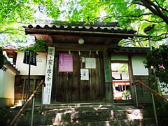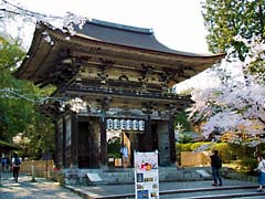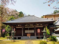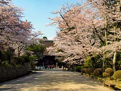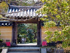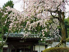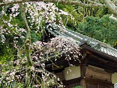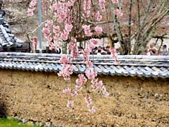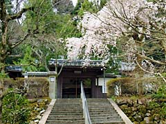 石段を登と岩屋寺の門があり、その傍らの枝垂れ桜が迎えてくれます。小さい寺院ですが、ここも大石内蔵助のゆかりの寺で、内蔵助が植えたとされる梅の木もあります。