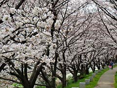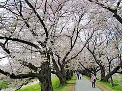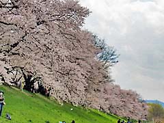 流れ橋から自転車専用道路を経て、八幡市の背割り堤に行きました。ソメイヨシノの並木道は1.4kmあり250本のソメイヨシノのトンネルは圧巻です。 (動 画)