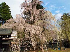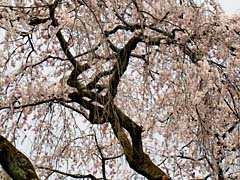 上段の左・中央がこの霊宝館では最大の枝垂れ桜です。巨木ですね。その他の枝垂れ桜も巨木で見事に咲いていました。
