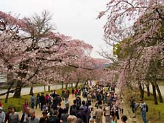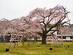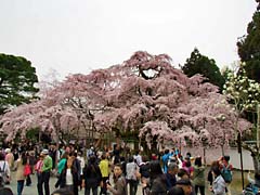 まず「醍醐寺・霊宝館」に入りました。霊宝館は、醍醐寺が保有する仏像が納められている建物ですが、今回は仏像よりこの建物の周囲に植えられた枝垂れ桜に眼が奪われます。