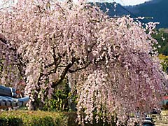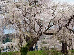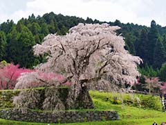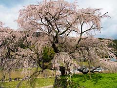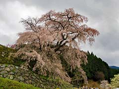 奈良県宇陀市大宇陀本郷に「又兵衛桜」という樹齢300年、幹約3m、高さ約13mという枝垂れ桜の巨木があります。大坂の陣で敗北した後藤又兵衛がこの地に落ちのび、僧侶となり一生を終えたという伝説があります。この桜も後藤家の屋敷跡にあることから「又兵衛桜」と呼ばれているとか。写真は、上段左の遠景から又兵衛桜を一周した写真と(動 画)です。