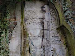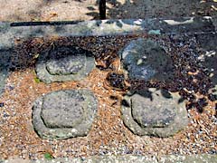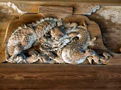 近江八景の一つ「三井の晩鐘」(写真左)です。どんな鐘の音なのかは(動 画)でお聴きください。左甚五郎の龍の彫刻です。(写真中央)この龍が夜な夜な琵琶湖に出て暴れるため、甚五郎自ら目玉に釘を打ち込み静めたということです。「弁慶の引き摺り鐘」です。(写真右)三井寺と比叡山が争ったとき、武蔵坊弁慶がこの鐘を奪って比叡山まで引き摺り上げたと伝わっています。この鐘確かに引き摺った痕跡があります。