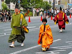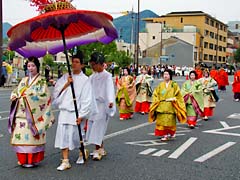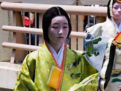 5月15日に京都三大祭りの一つの「葵祭」が行われました。葵の葉を男子は頭に女子は胸に全員が挿してします。(上段:左、中央) 祭の主役の斎王代(中段:右)ですが、斎王代になるには書類選考やオーディションで決めるのではなくて、数千万円といわれるいる費用が負担できることが第一条件だそうですので、我々庶民はそんな大金を支払えないですよね。