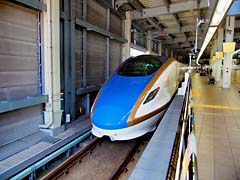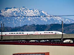 1ヶ月前の4月24日から二泊三日で、秋田県の角館の桜・大曲の花火を見に行きました。金沢から上越妙高まで初めて北陸新幹線に乗りました。車窓から見た山々は、まだ真冬の装いです。偶然にも、金沢行きの「はくたか」をバスの車窓から写すことができました。ゆる鉄・鉄道写真家の中井精也のような写真が撮れたような??
