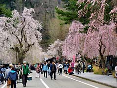 「みちのくの小京都」と呼ばれている、秋田県仙北市角館町の「武家屋敷通り」の桜です。ほとんどが枝垂れ桜でした。観光客でいっぱいで、ここもアジアのある国の言葉が飛び交っていました。
