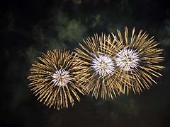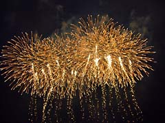 秋田県大仙市大曲の花火です。大曲の花火と言えば8月に行われる「全国花火競技大会」が有名ですが、今年は「第16回国際花火シンポジウム」が大曲で開催されたので、そのプログラムの一環として4月25日に行われました。(動 画)