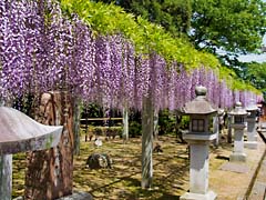 三大神社から歩いて15分程で「惣社神社(そうしゃじんじゃ)」があります。ここも藤がきれいなところです。樹齢は500年と案内板に書かれてありました。三大神社と違って人も数人しかいなくてとても静かに見ることが出来ます。自由に拝観できますが、駐車場はありません。