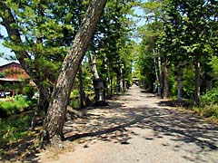 同じく三大神社から15分程のところに「志那神社」があります。三大神社・惣社神社と並んで「志那三郷の藤」と呼ばれていますが、ここも人が3名居ただけの寂しい神社でした。参道は、「志那神社の松」と呼ばれる松並木が続いています。上段右の写真は、本殿を解体修理のときに基礎石が出土、平安時代のものと判明したので延暦13年(794)から建久2年(1191)の間に建立されたことになります。拝観自由ですが駐車場は2台程しかスペースがありません。三大神社に止めて惣社神社・志那神社へは歩くのがベスト。