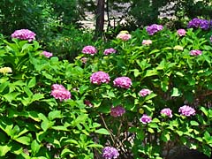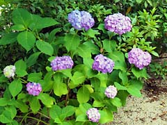 八幡の「四季彩館」前の紫陽花を写しに行きました。途中、古川小学校の校庭にビワの木がありビワが沢山出来ていました。木津川の堤防では草刈りが行われ、その場で焼却の煙が立ち上っていました。紫陽花は、この頃は雨が降らないので元気がありません。