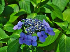 6月も中旬、田植えもほぼ終わりました。流れ橋を渡り「四季彩館」前に小さな広場がありますが、そこに紫陽花が咲いています。近くにこんなところがあるものです。お勧めです。