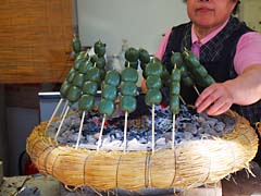 葛城高原に戻って、どこかの報道機関?であろうヘリコプターが旋回して撮影していました。山頂付近に売店があり、焼よもぎ団子がありました。味噌だれで食べます。一本350円です。