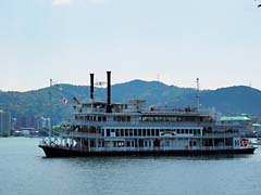 このイングリッシュ・ガーデンの目の前が琵琶湖です。琵琶湖の観光船「ミシガン」が目の前を通過していきました。(動 画)そして釣り舟が見られました。マイカーならぬマイボートなんて贅沢??