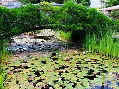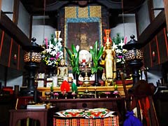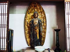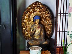 本堂前には、鐘楼、小さな池があり睡蓮が咲いていました。そして本堂内とその仏像です。